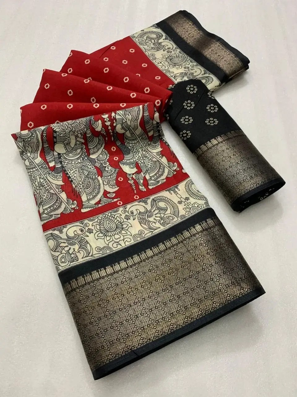 Indulge in the luxury of a Soft Dola Silk Saree, a timeless piece that will elevate your style and make you feel truly special. But hurry, this exquisite garment is in high demand and may not be available for long.
